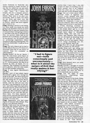 And one more terrific Fangoria magazine interview with a prominent 1980s horror writer, this time John Farris (issue 67, Sept 1987). Thanks again to TMHF reader Peter F. for sharing these scans with me. Hope you've enjoyed them, I know I did!