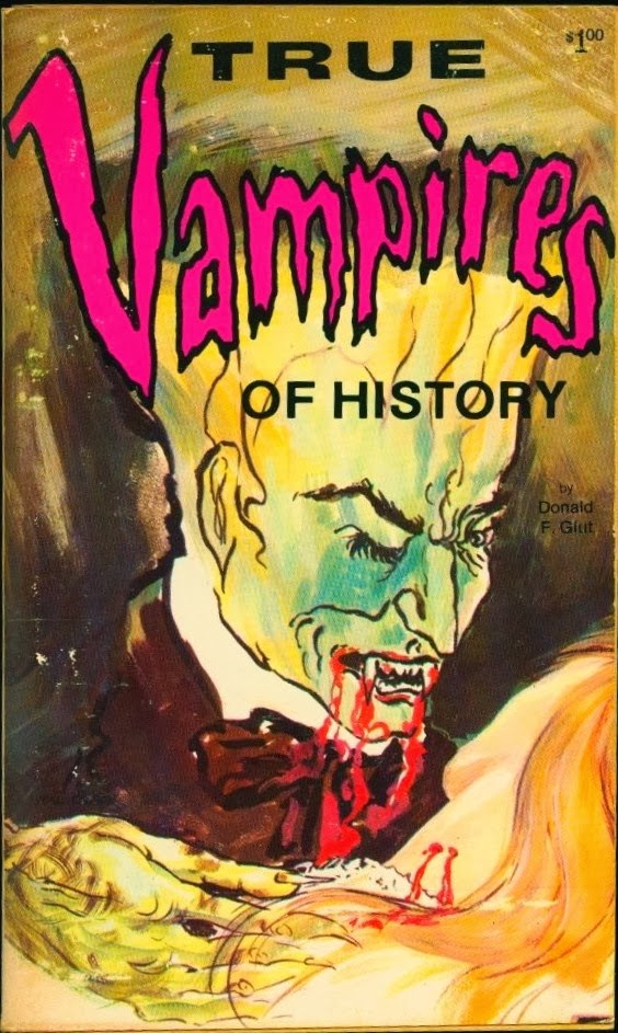 5. Early '70s, title something like True Vampire Stories and its cover art featured a vampire with an impossibly elongated head, blood dripping from his tiny mouth, and short, spiky hair with yellow or maybe green skin.  The book purported to feature stories or legends of "real vampires" as accounted by folklore.  I remember one story in particular featured the tale of "The Vurdalak." Found! It's: